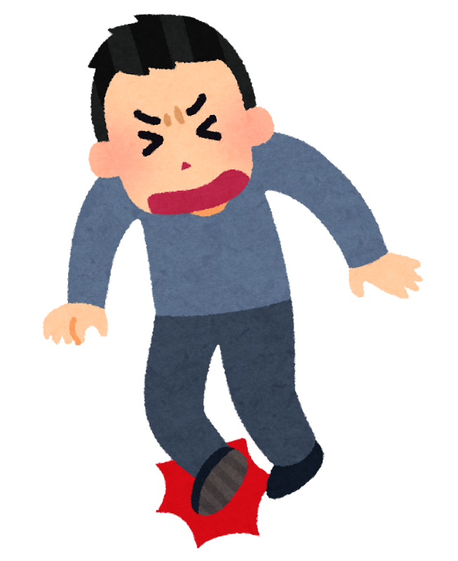 本来、足裏で接地しないといけないところを横側や背面で接地してしまうと踏ん張ることができずそのまま荷重で関節の正常可動域を超えてしまいます。
